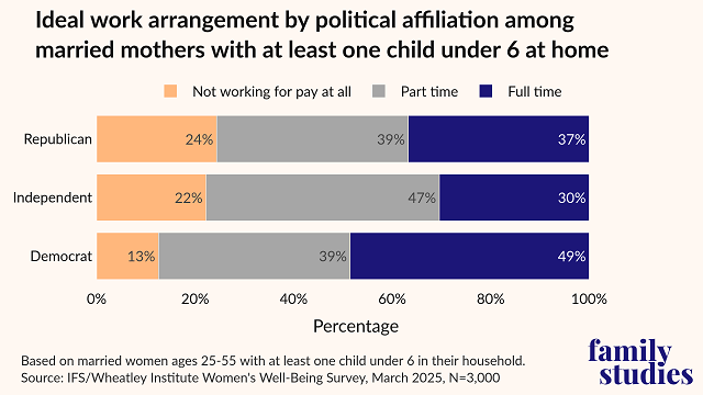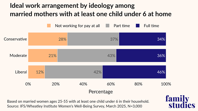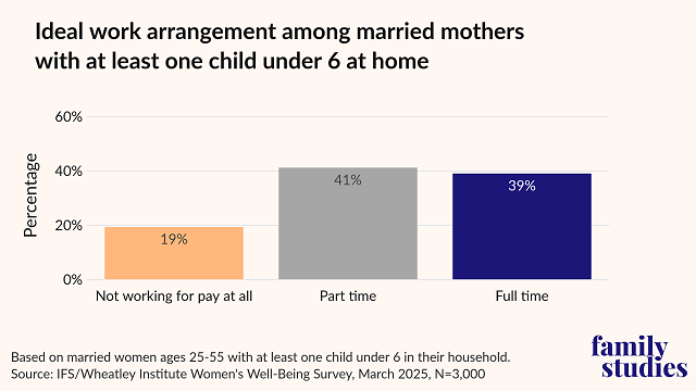- Married mothers of young children in households earning less than $60,000 and between $60K-90K were significantly more likely than those earning more than $100,000 to report “not working for pay at all” as their ideal, per the 2025 Women’s Well-Being Survey from IFS and the Wheatley Institute. Post This