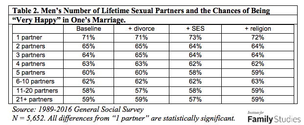 3. The difference between having one and more than one lifetime sex partner is most consequential in predicting marital quality. Post This