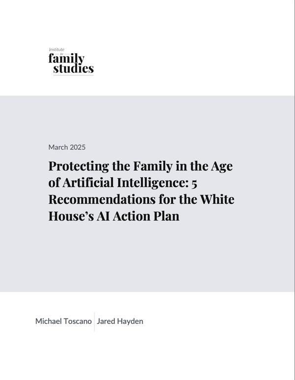 Over the next several years, the Family First Technology Initiative will produce original reports, develop model policies, and evaluate the effects of new technologies, like Artificial Intelligence, on American family life.
