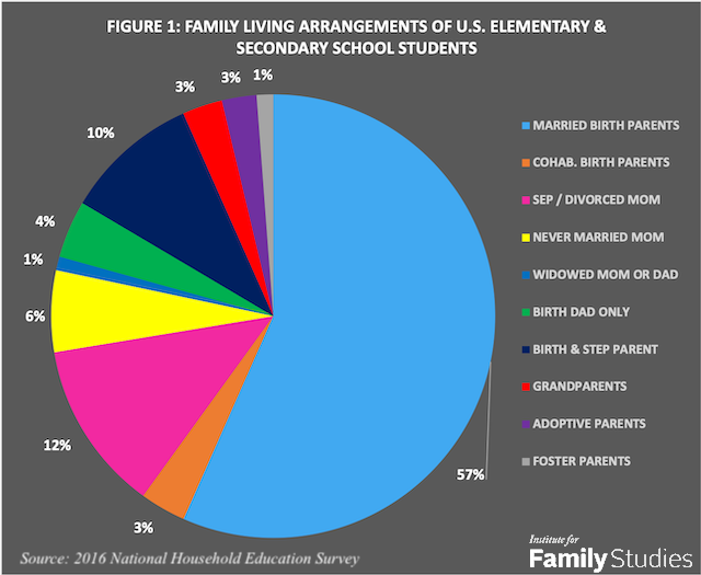 In this new IFS research brief, I examine data from a recent federal survey to explore the link between students’ family living arrangements and three key indicators of student performance and adjustment in elementary and secondary schools across the United States. The survey was the 2016 National Household Education Survey (NHES), a nationwide mail and Internet survey of parents of 13,523 children who were enrolled in elementary and secondary schools across the country. The indicators were: