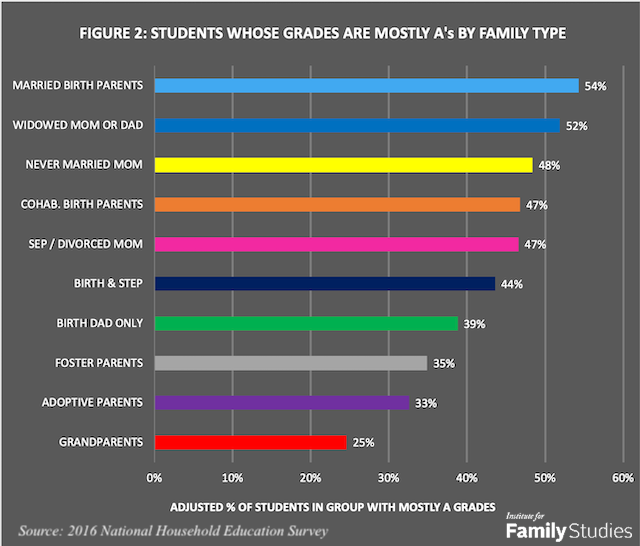 - More than half of students from married two-parent families had mostly A grades, whereas the same was true of less than half of students from most of the other family types. Post This