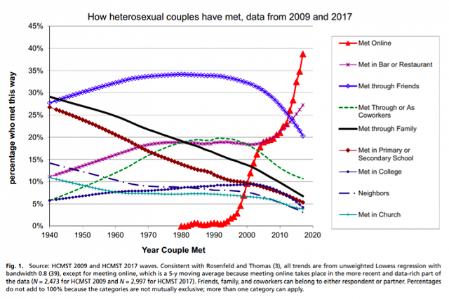 Source: Rosenfield, Michael J., et al., Disintermediating your friends: how online dating in the United States