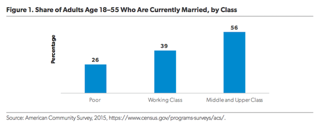 Finally, leaders need to pursue a strategy to extend norms around marriage and childbearing—which remain strong among the middle and upper class—to working-class and poor women and men. The alternative to taking steps like these is to accept a world where middle- and upper-class Americans benefit from strong, stable families while everyone else faces increasingly fragile families, and where high rates of economic inequality and child poverty are locked in by a marriage divide that puts working-class and poor Americans—and their children—at a stark disadvantage.
