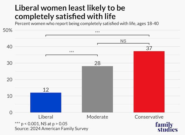 - Young conservative women are three times as likely to report being very satisfied with life compared to young liberal women. Post This